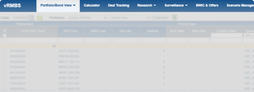 Vichara's RMBS solution brings loan-level analytics, scenario modeling, and market-aware tools into one platform, giving your team the speed, depth, and control to analyze, value, and manage RMBS risk from tape to trade